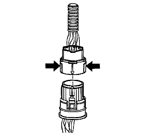 ^ In order to reinstall the external wiring connector, first orient the pins by lining up the arrows on each half of the connector. Push the connector straight down into the transmission without twisting or angling the mating parts.