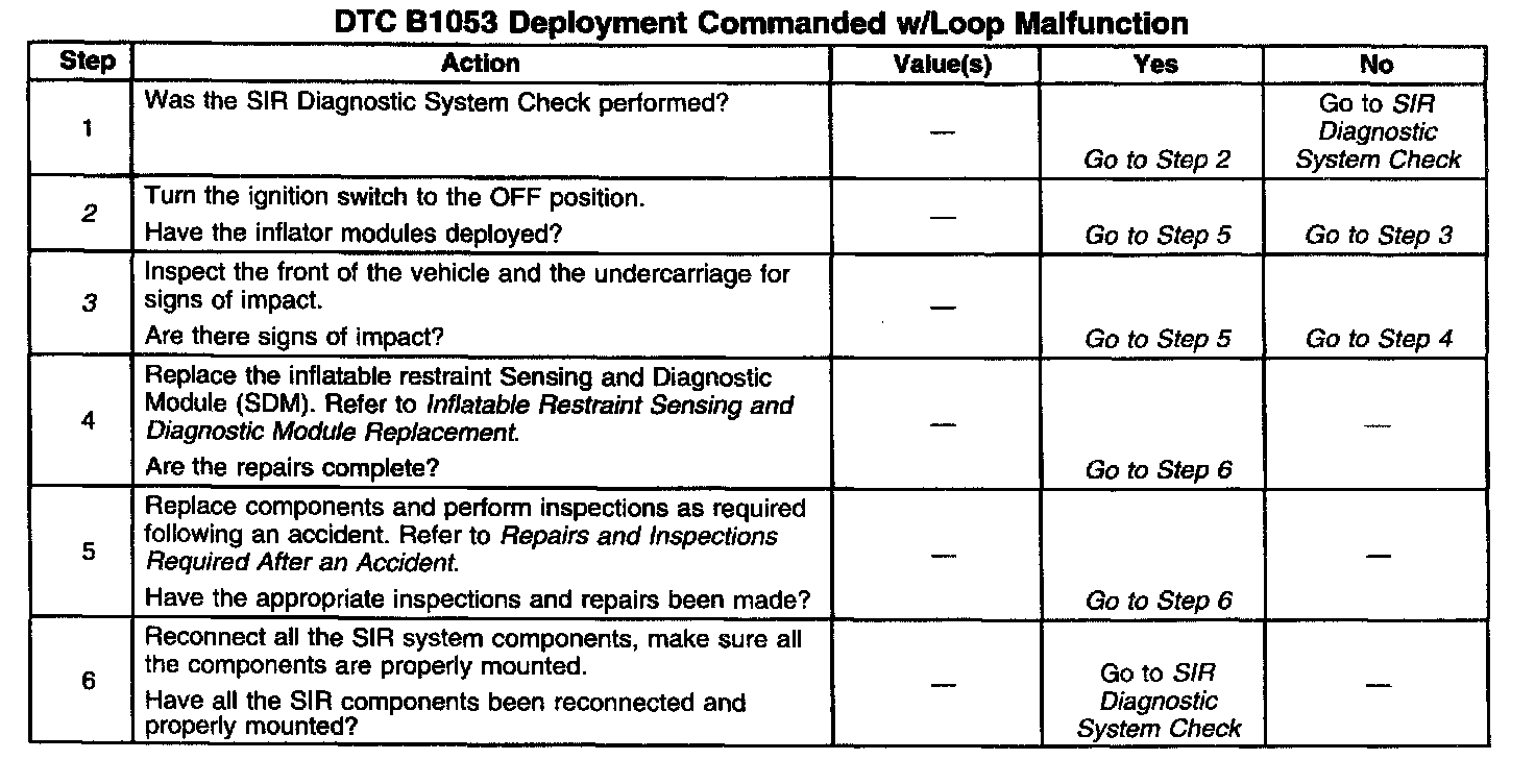 2. If the inflator module(s) has not deployed, DTC B1053 may have set falsely.