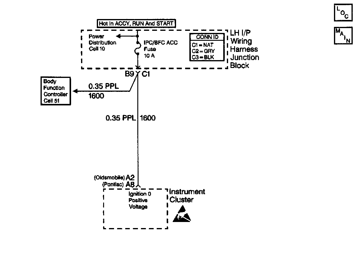 This is the ignition switch position Ignition 0, 1600 circuit, input to the Body Control Module (BCM) and the instrument cluster.