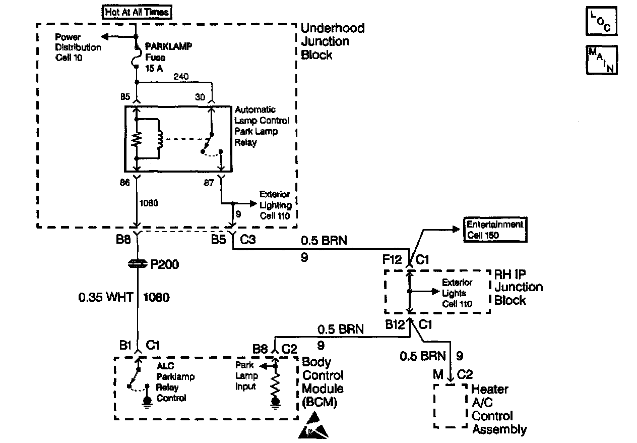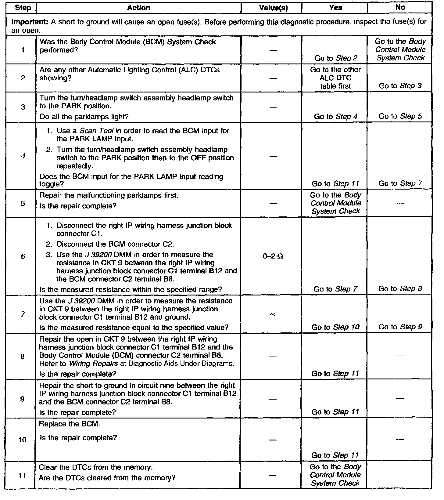 ^ If you find B+ on the BCM parklamp relay output, check the ALC parklamp relay and the power to the relay.