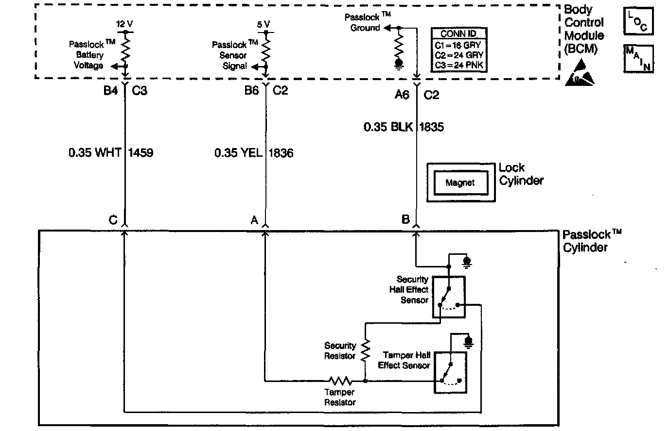 This circuit supplies the Passlock data to the Body Control Module (BCM) from the Passlock sensor, CKT 1836.