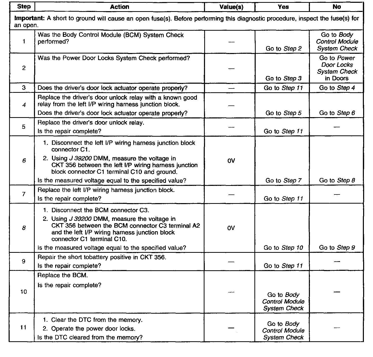 4. This step determines it the driver door unlock relay is operating properly