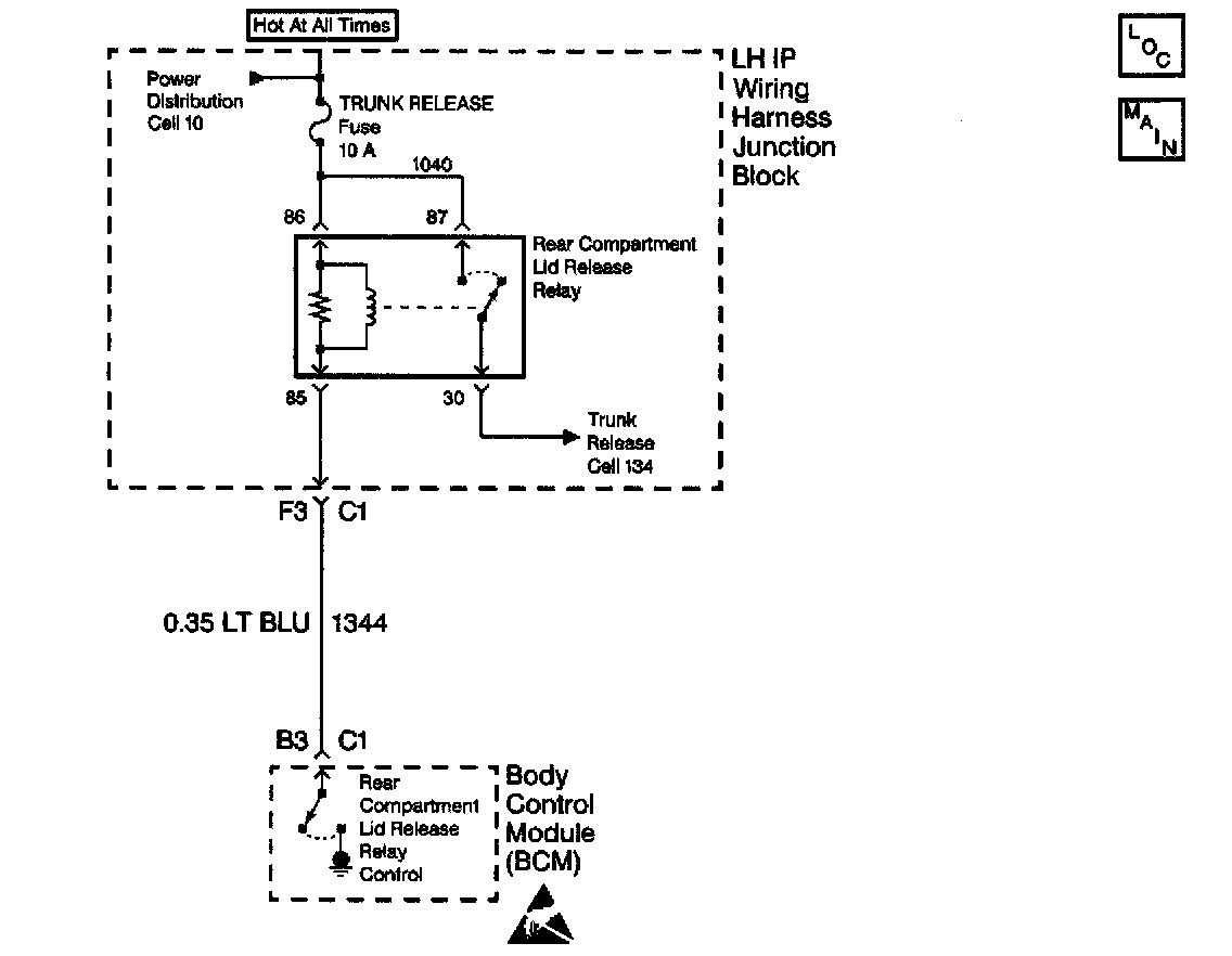The Body Control Module (BCM) monitors CKT 1344 as an input in order to determine if the rear compartment lid relay is circuit shorted to battery voltage. When CKT 1344 is shorted to battery voltage the BCM sets a DTC B3268 related DTC.