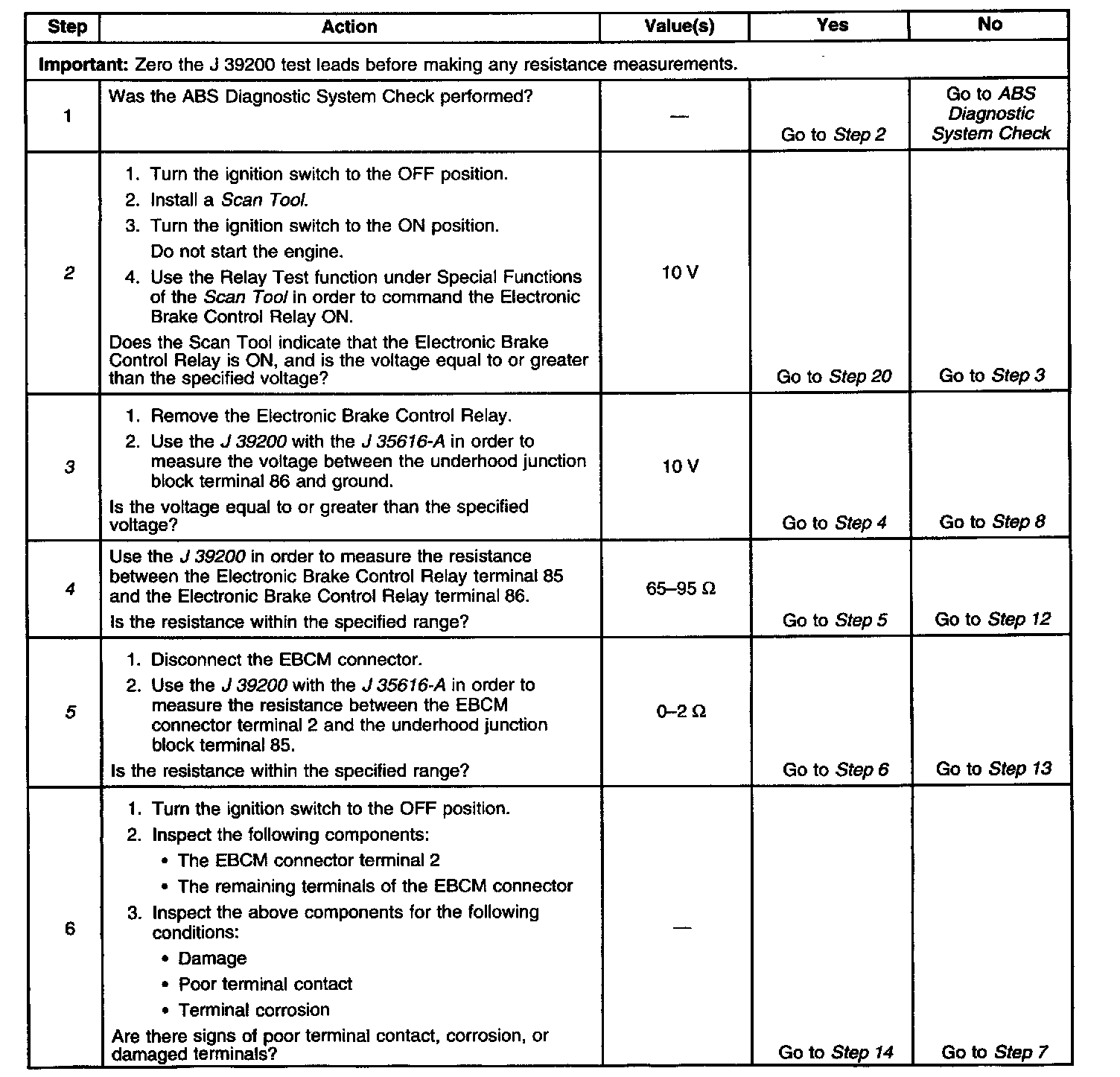 2. This test determines if the EBCM is capable of controlling the electronic brake control relay as commanded.