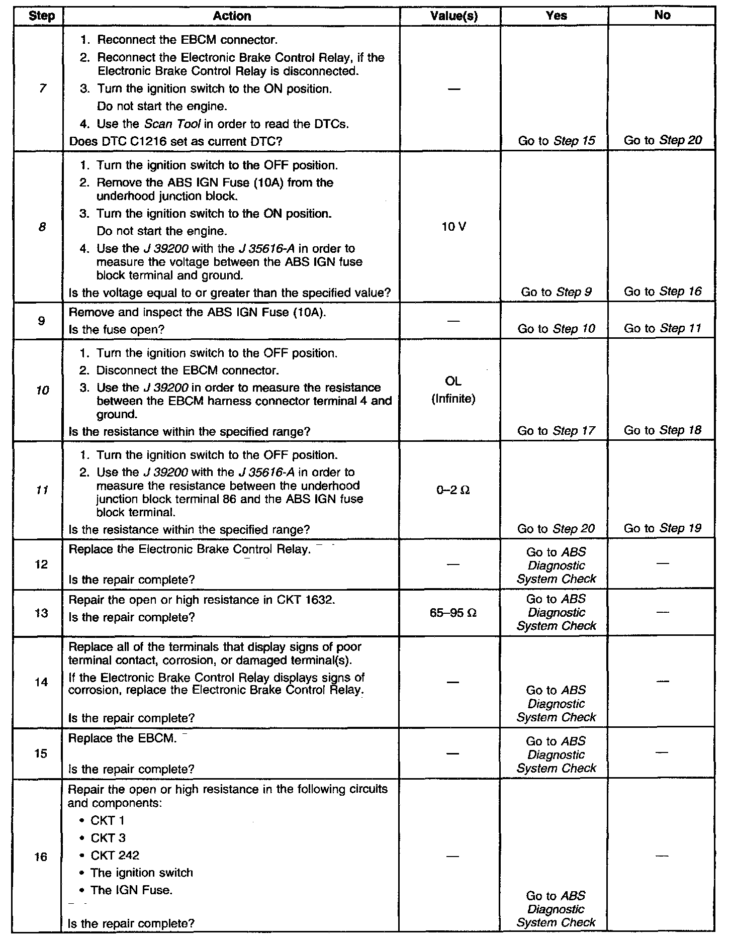 DTC 1216 can set anytime after the Electronic Brake Control Relay is commanded ON.