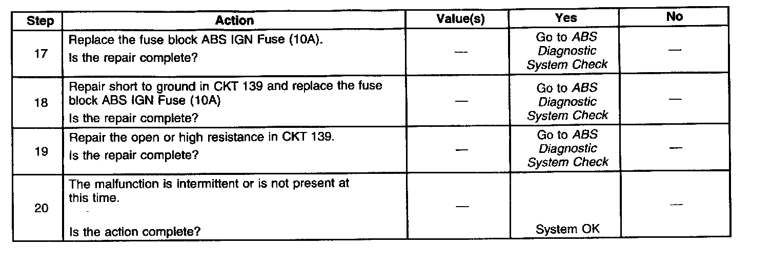 11. This test checks for an open or high resistance in the underhood junction block between the ABS IGN fuse and the electronic brake control relay.