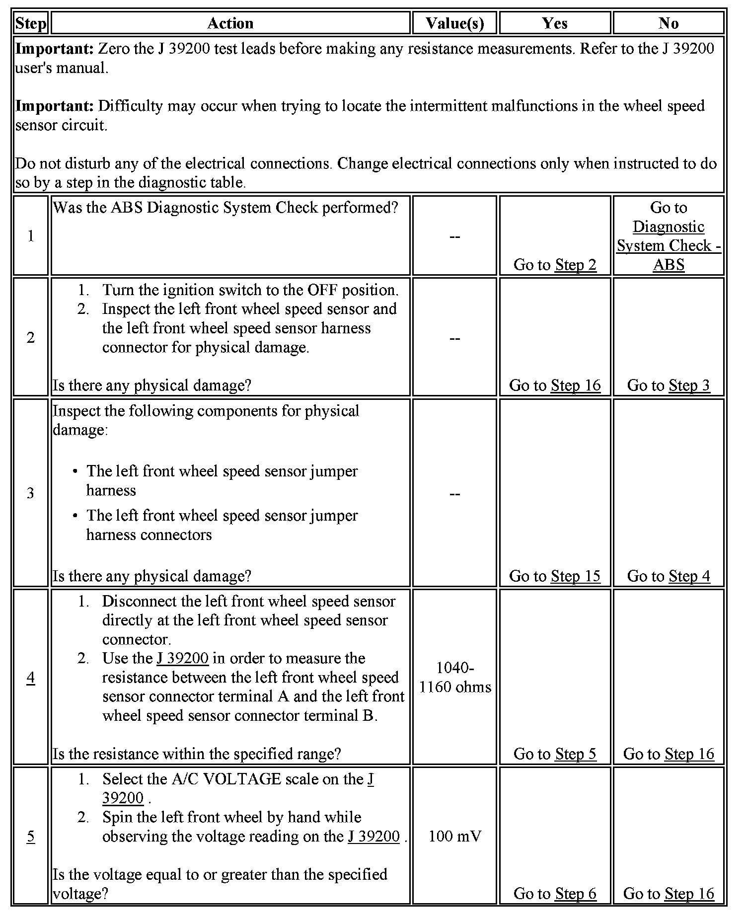 4. This test checks the wheel speed sensor for the proper resistance value.