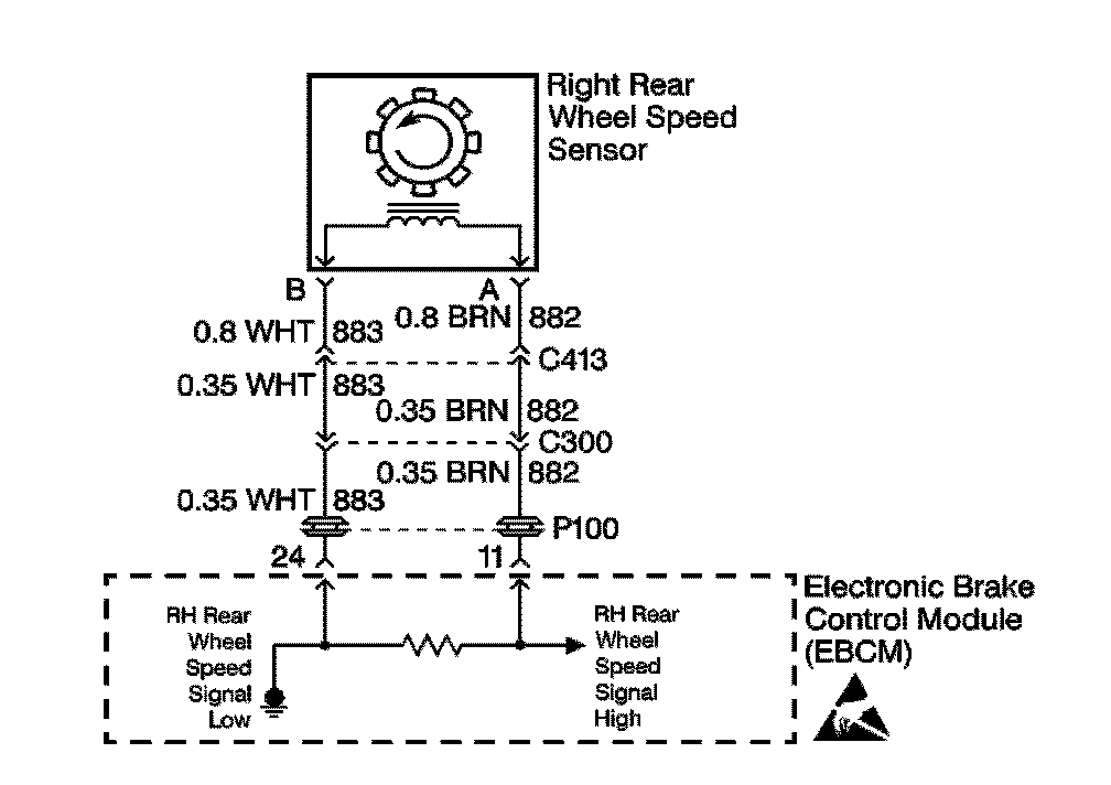 - The right rear wheel speed sensor input signal equals zero.