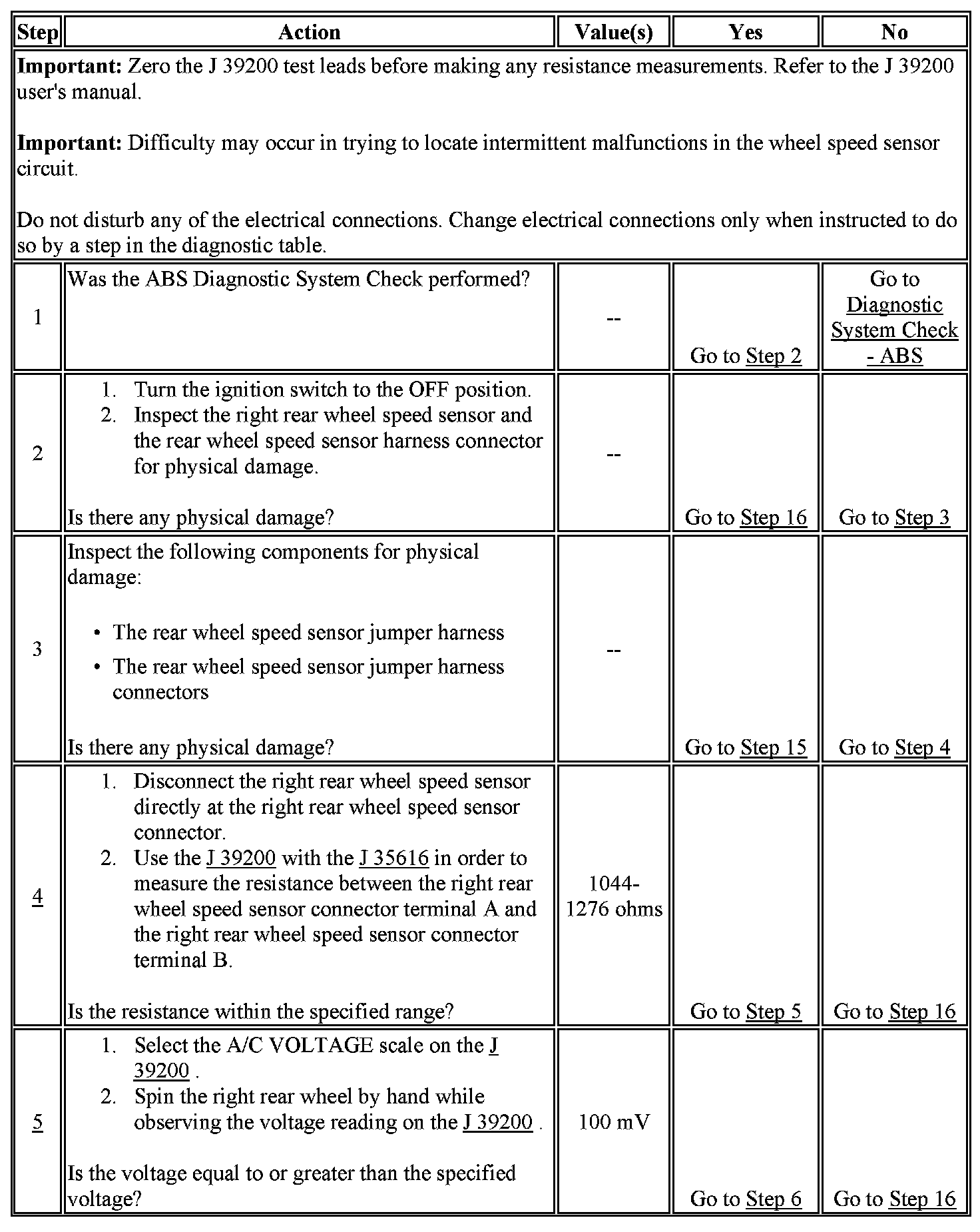 4. This test checks the wheel speed sensor for the proper resistance value.
