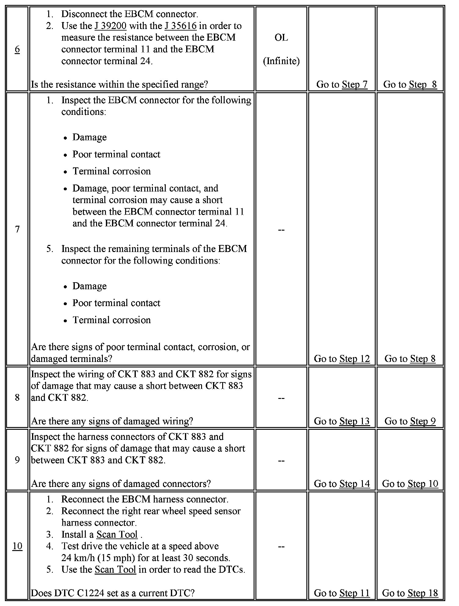 10. This test determines if a wheel speed sensor circuit could be shorted when the EBCM is connected.