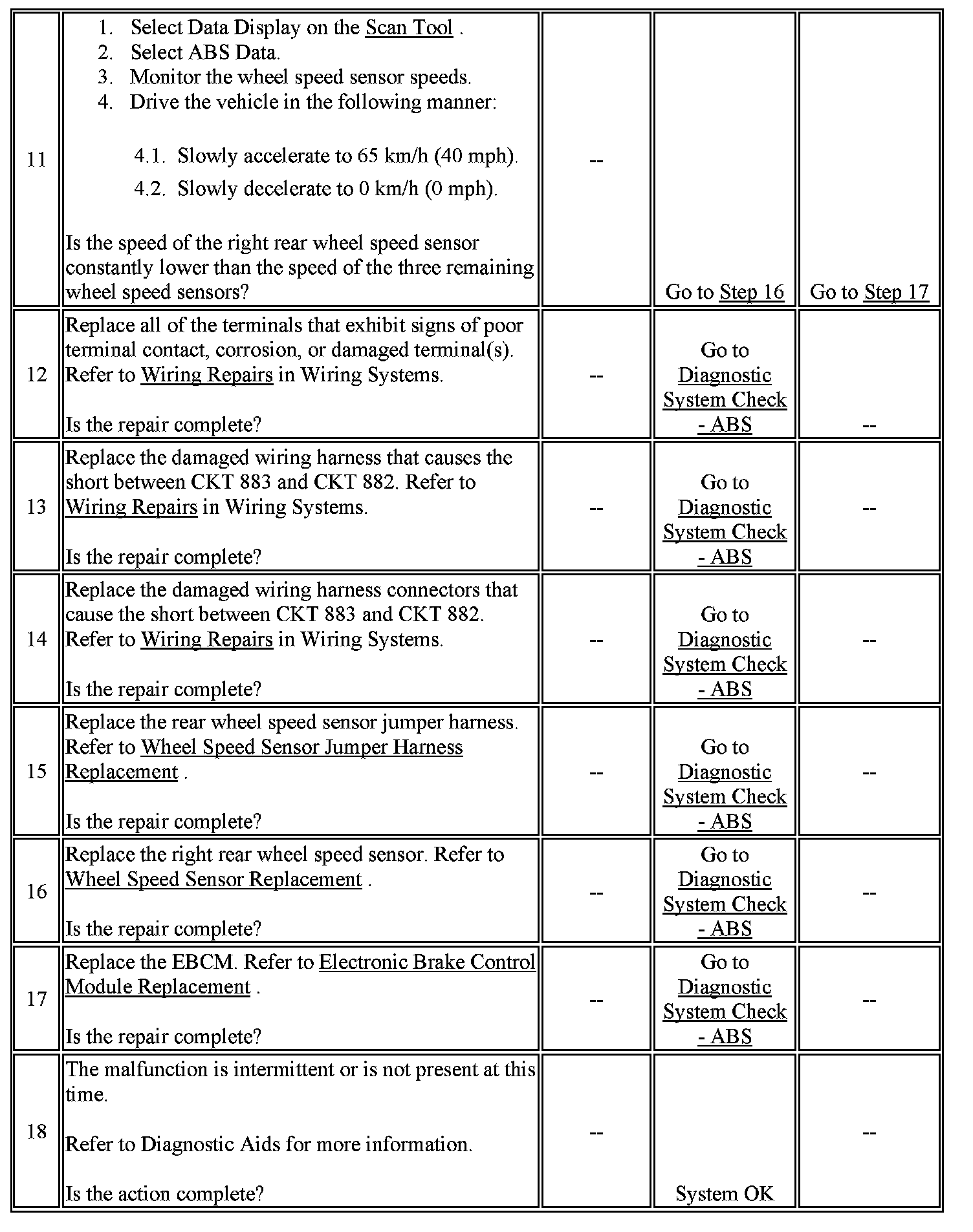 6. This test checks for a short between the wheel speed sensor high and low circuits.