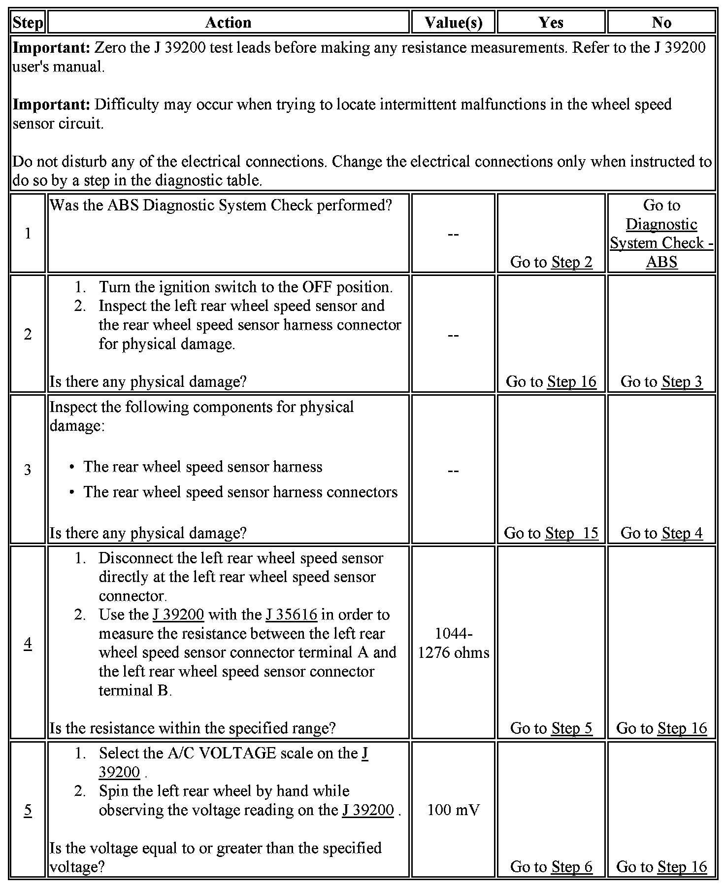 5. This test ensures that the wheel speed sensor generates the proper voltage.