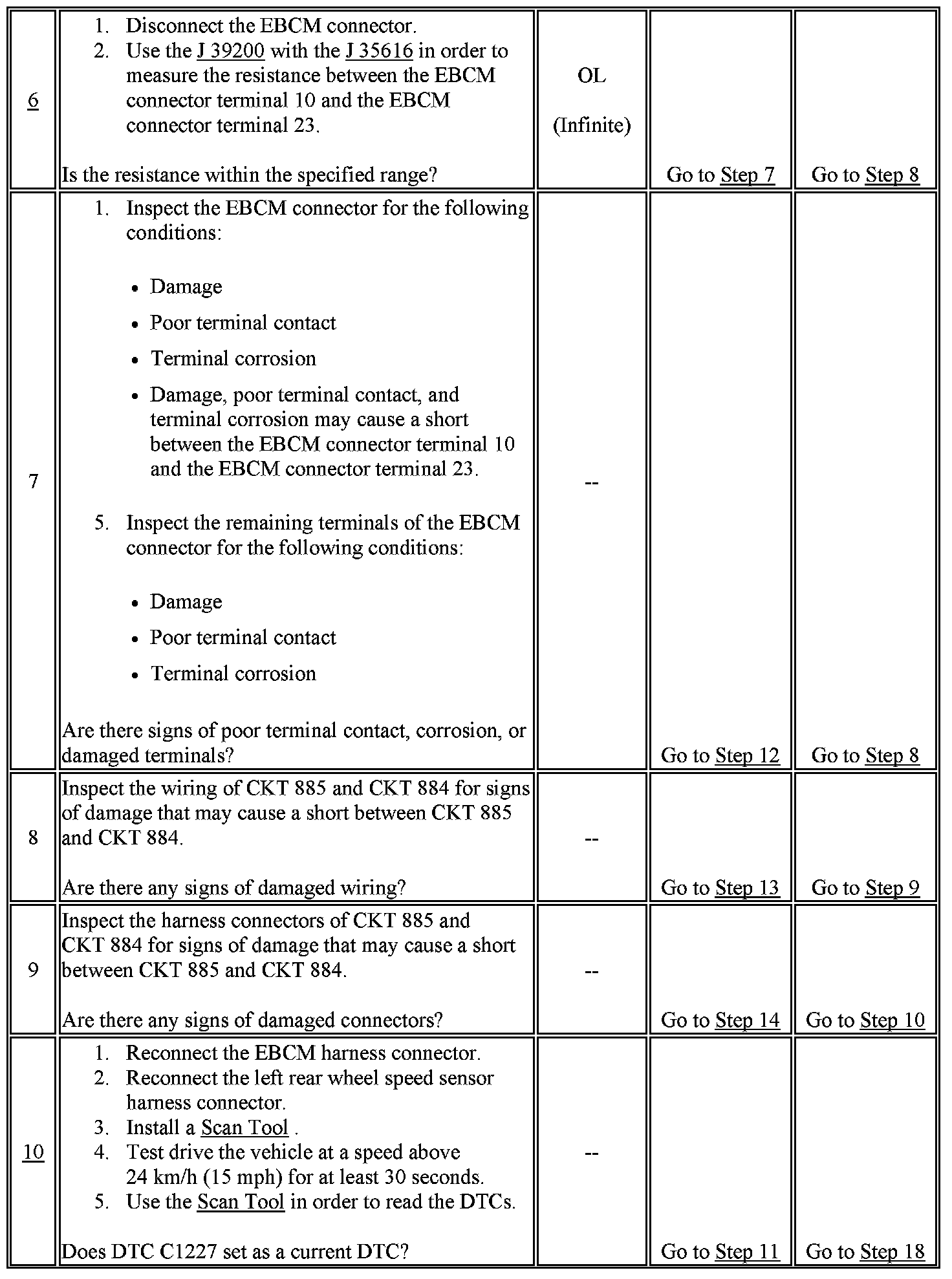 10. This test determines if a wheel speed sensor circuit could be shorted when the EBCM is connected.