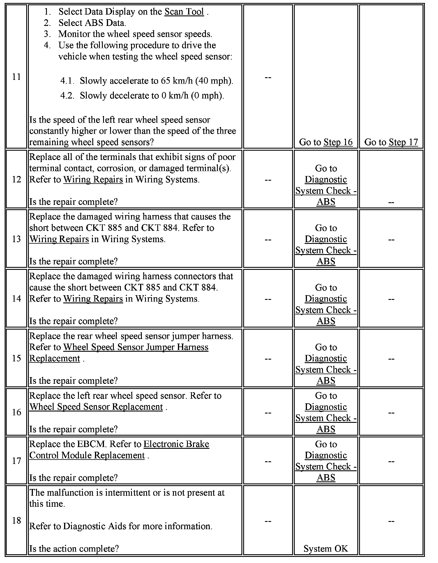 6. This test checks for a short between the wheel speed sensor high and low circuits.