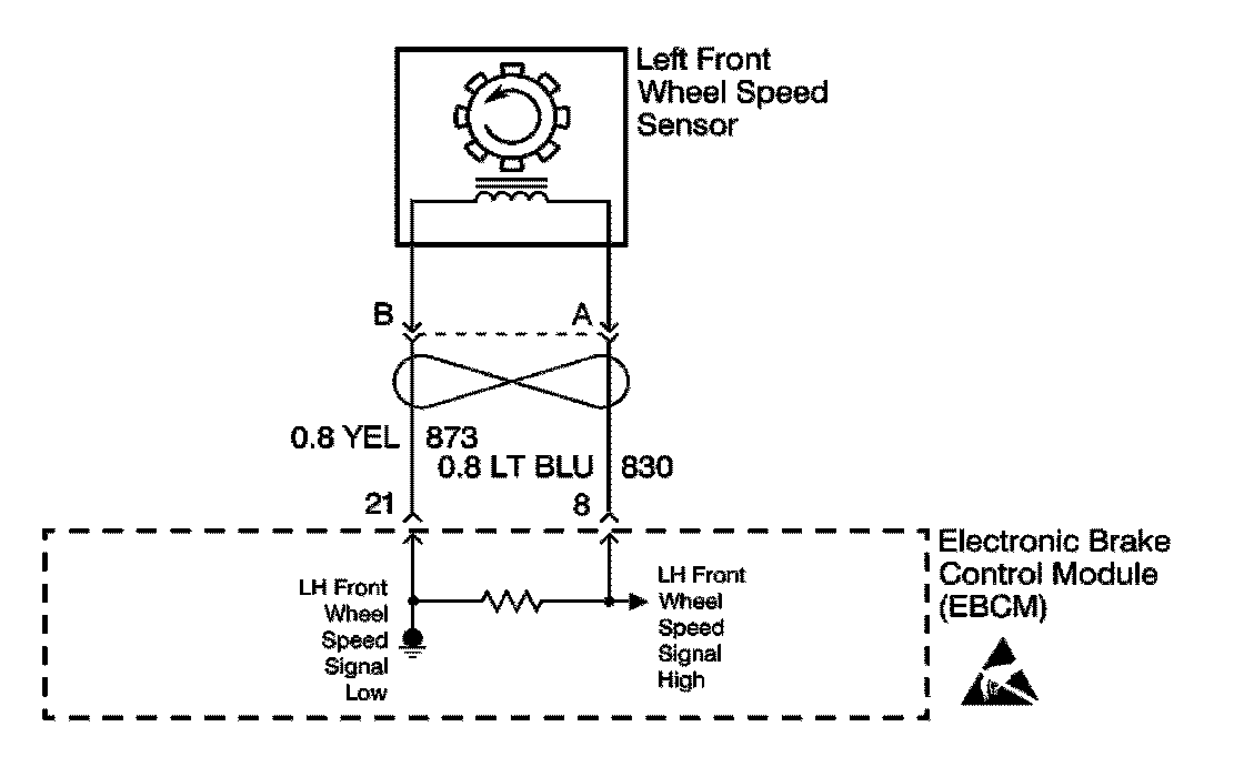 - A malfunction exists if either of the left front wheel speed sensor circuits are open or shorted to voltage or ground.