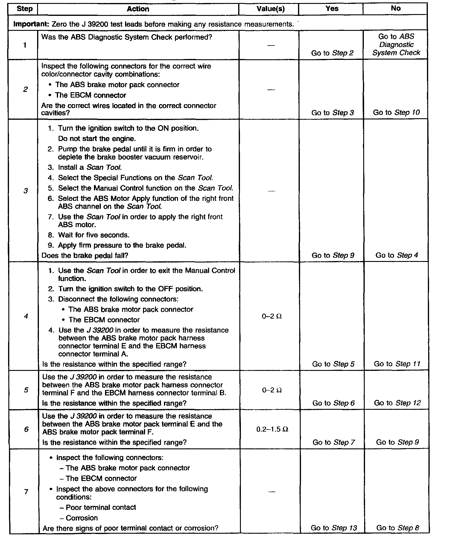6. This test checks for excessive resistance in the right front motor.