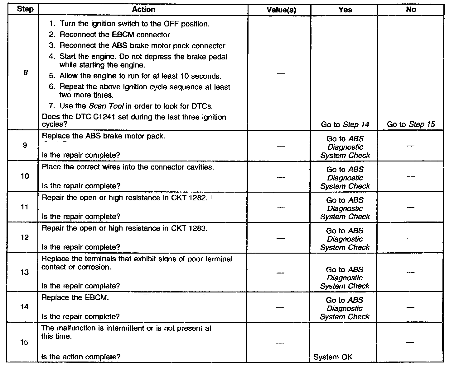 ^ The condition responsible for setting the DTC no longer exists and the Scan Tool Clear DTCs function is used.