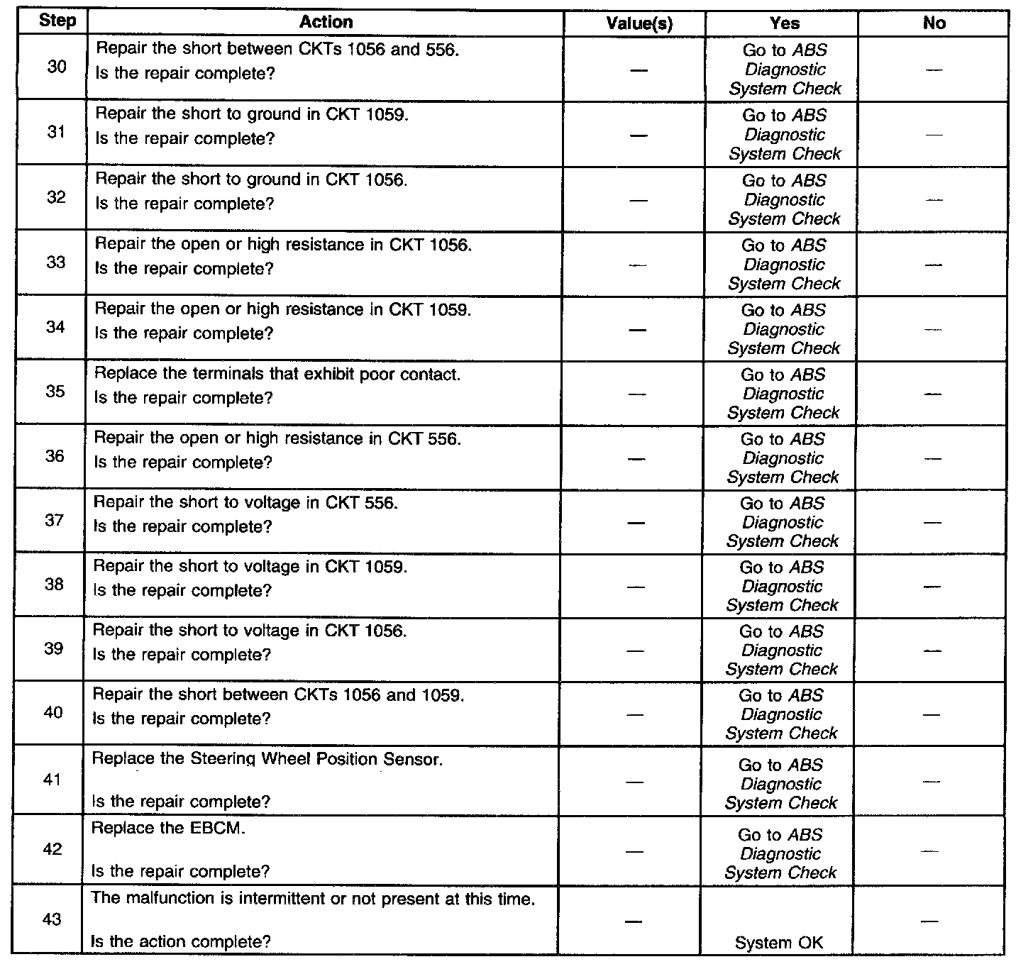 ^ The condition responsible for setting the DTC no longer exists and the Scan Tool Clear DTCs function is used.