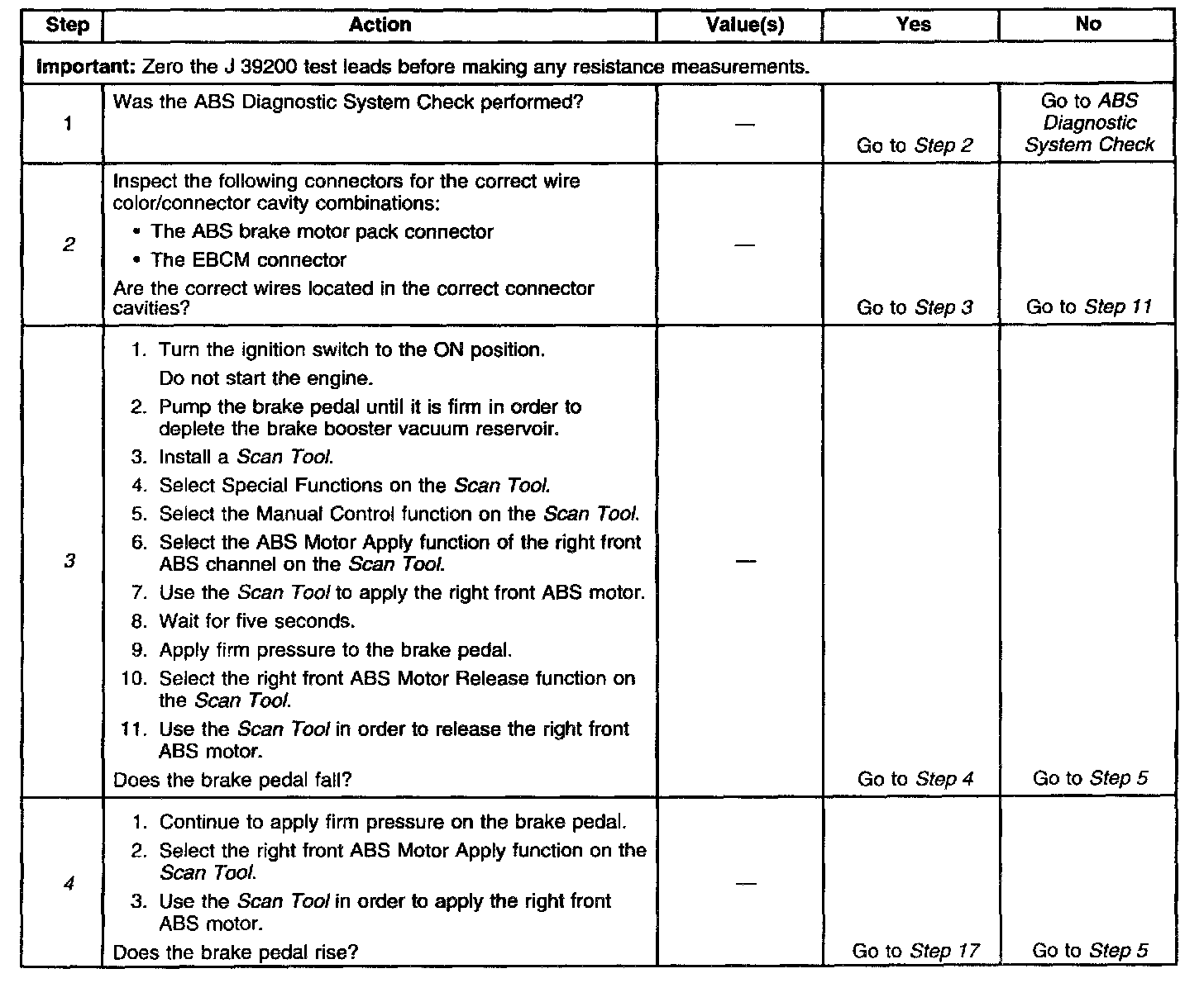 A malfunction exists if the EBCM detects a condition in which the EBCM cannot move the ABS motor in either direction.
