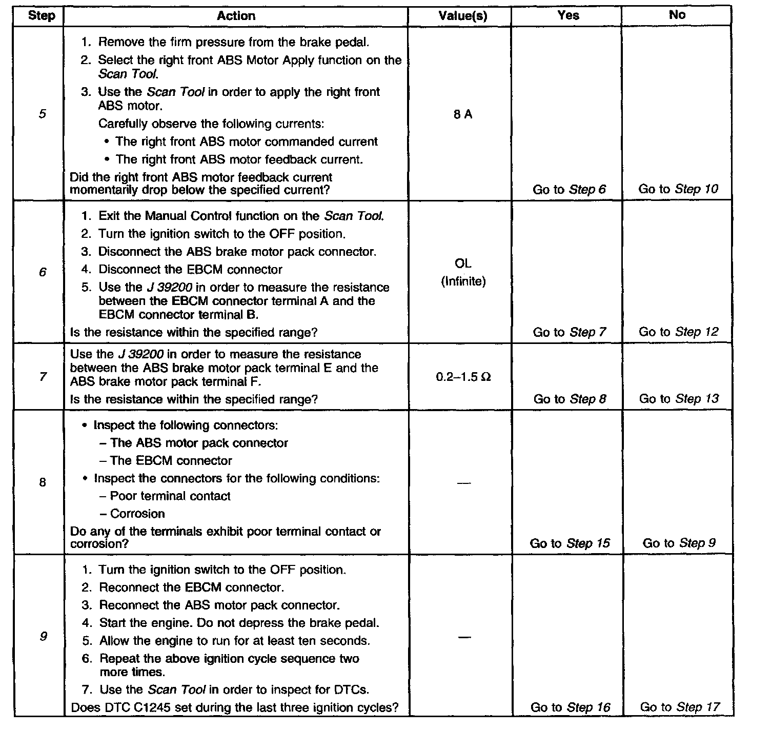 Use the enhanced diagnostic function of the Scan Tool in order to measure the frequency of the malfunction. DTC C1245 may set after modulator disassembly if the modulator pistons are positioned at the bottom of the modulator piston bore.