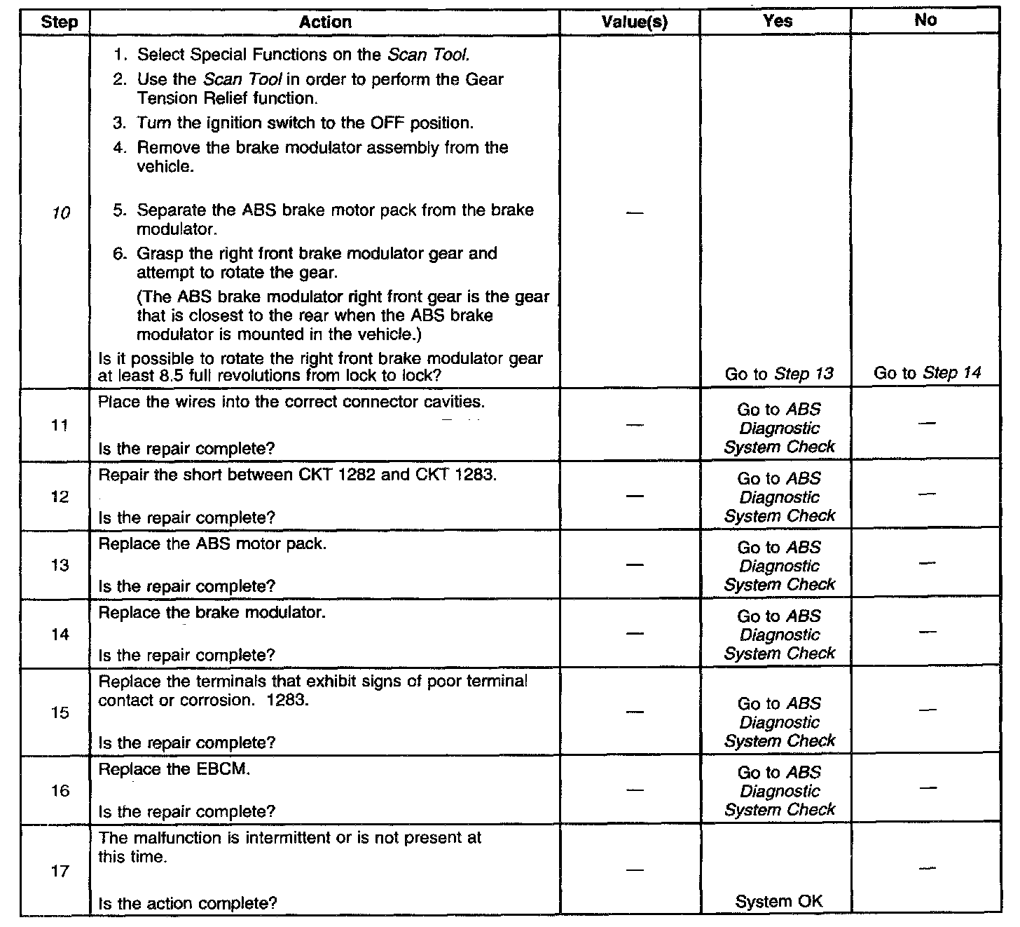 10. This test determines if the hydraulic modulator is functioning properly by manually moving the piston.