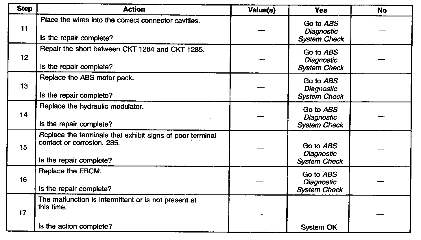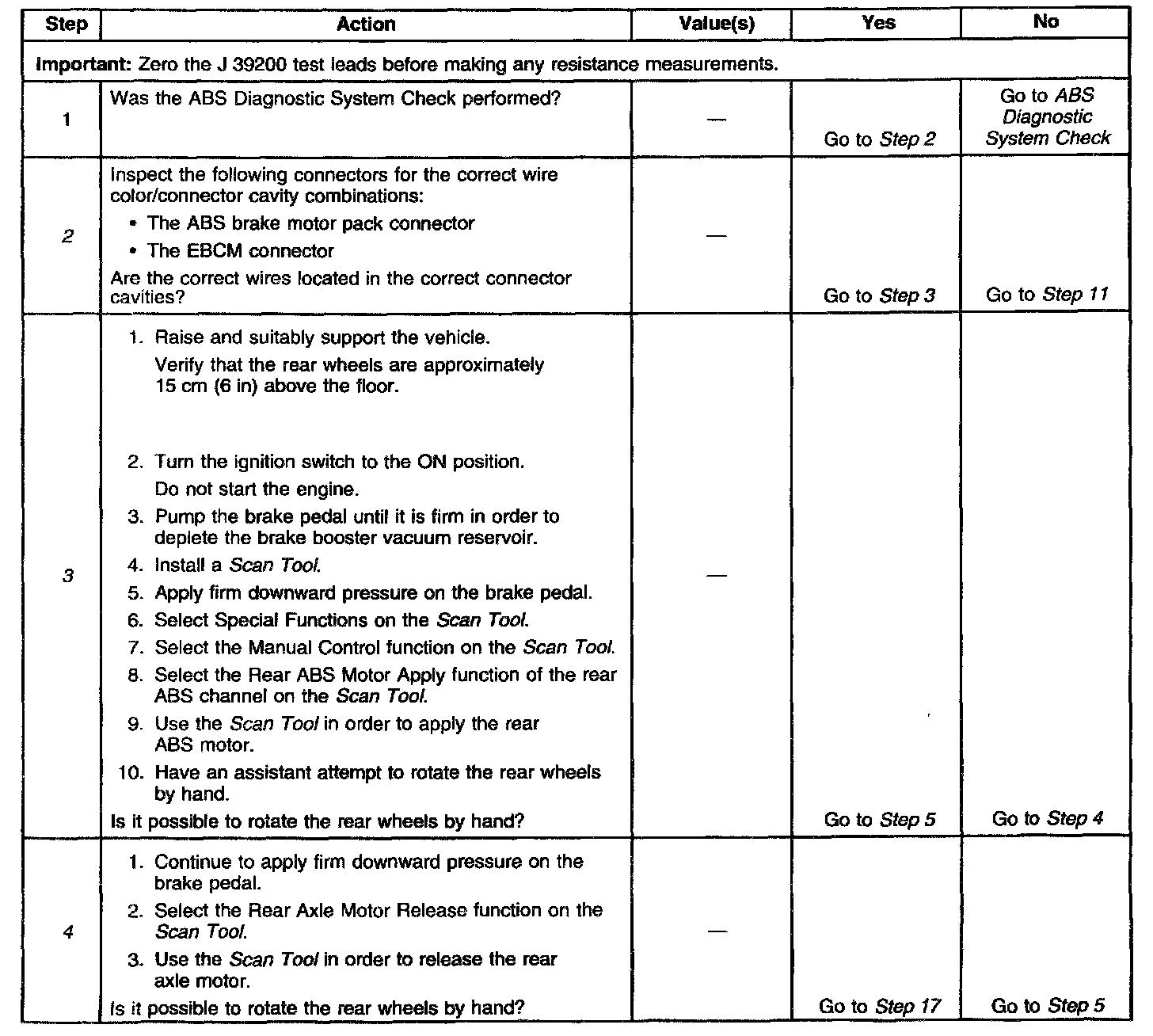 A malfunction exists if the EBCM detects a condition in which the EBCM cannot move the ABS motor in either direction.