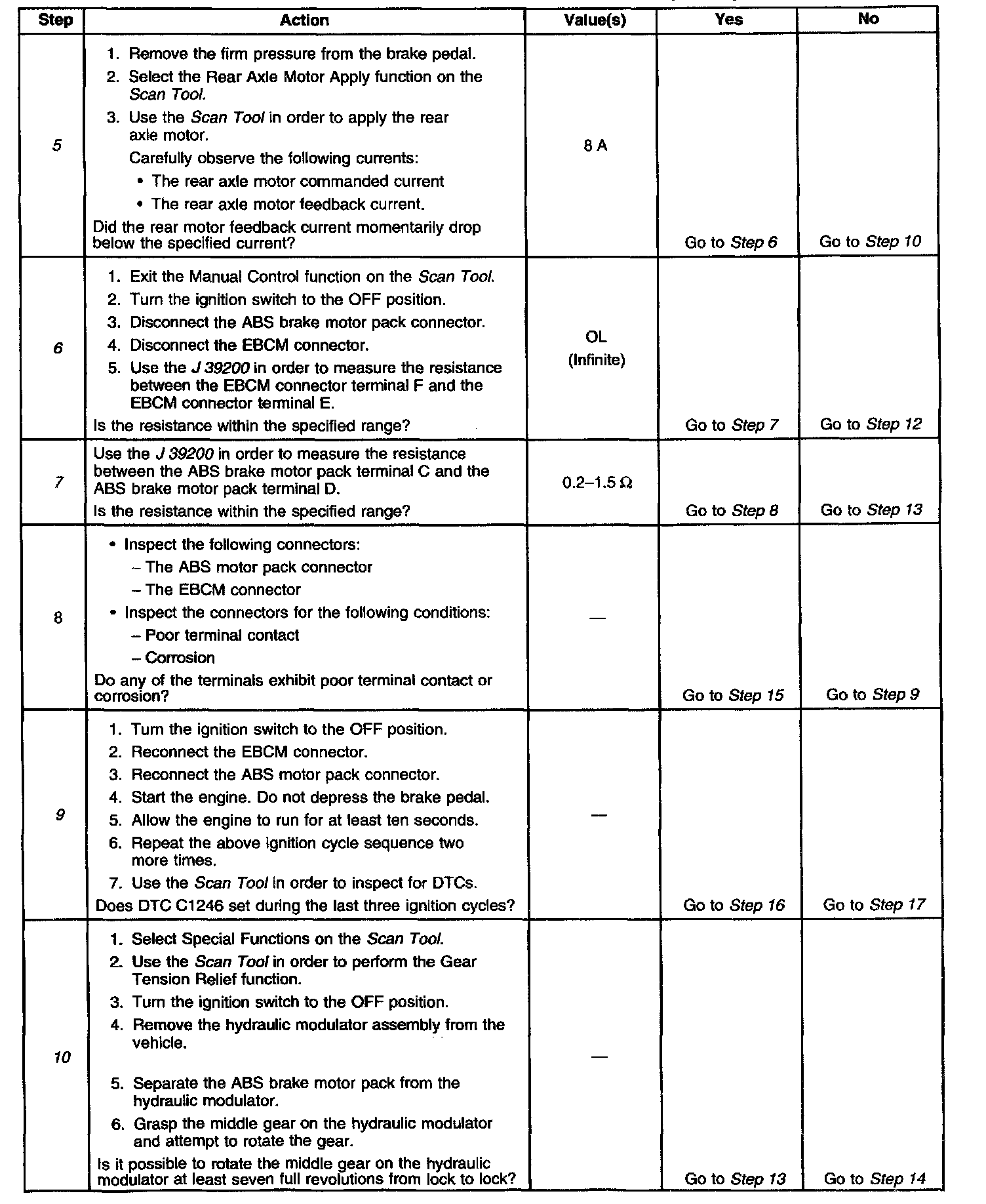 Use the enhanced diagnostic function of the Scan Tool in order to measure the frequency of the malfunction. DTC C1246 may set after modulator disassembly if the modulator pistons are positioned at the bottom of the modulator piston bore. Depending on the frequency of the malfunction, a physical inspection of the mechanical parts suspected of causing the malfunction may be necessary.