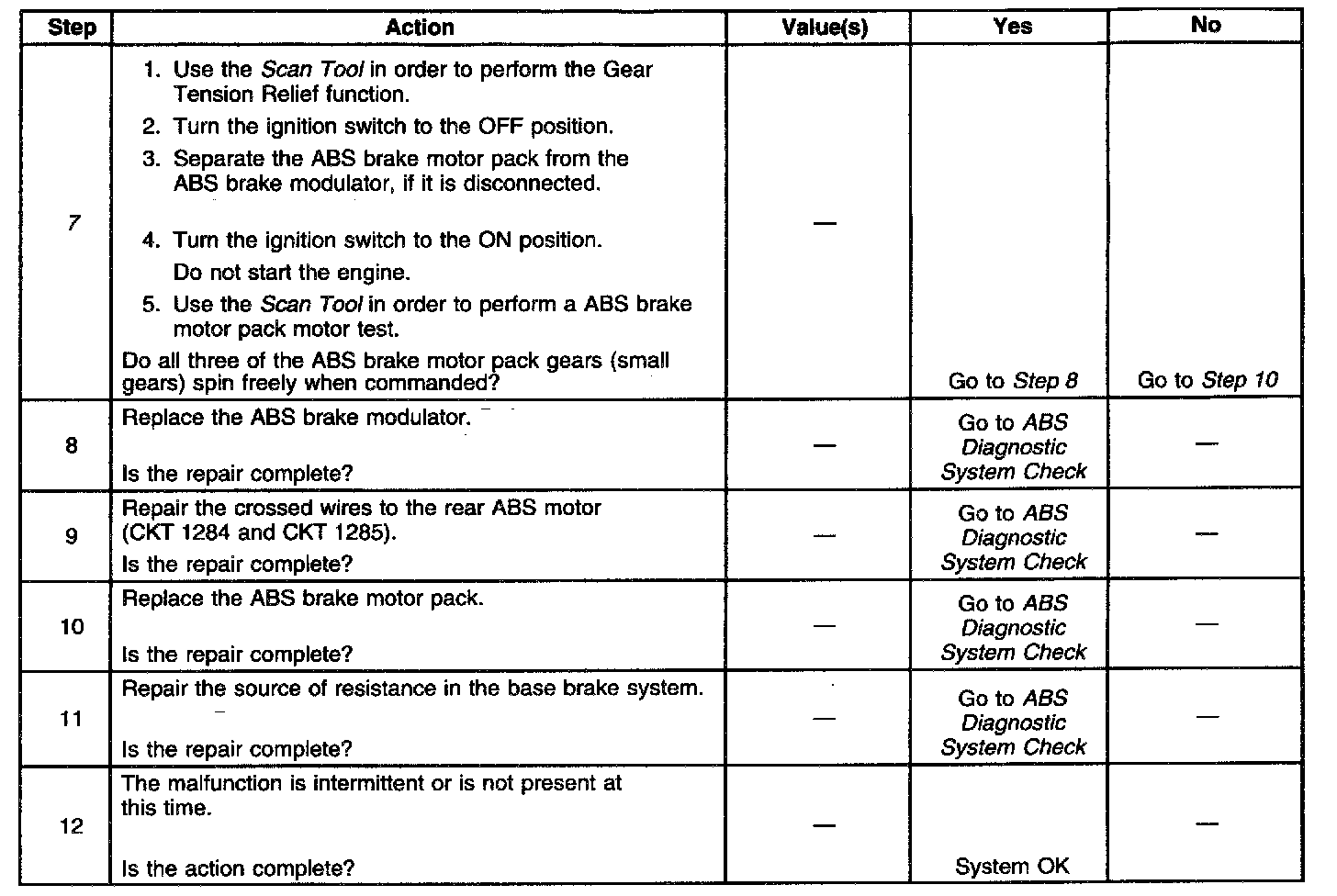 7. This test isolates the malfunction of a no apply situation to either the motor pack or the hydraulic modulator.