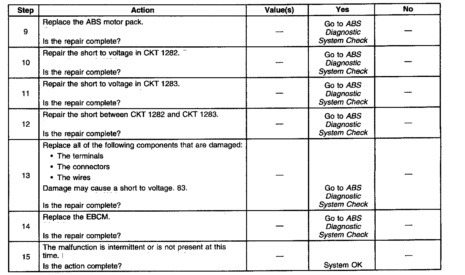 ^ An ABS brake motor shorts internally. Action Taken When the DTC Sets
