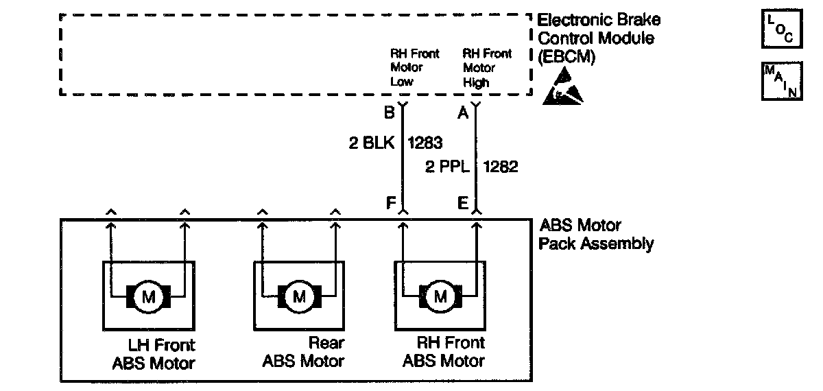 A malfunction exists if The EBCM detects an out of range voltage on either of the right front ABS motor circuits.