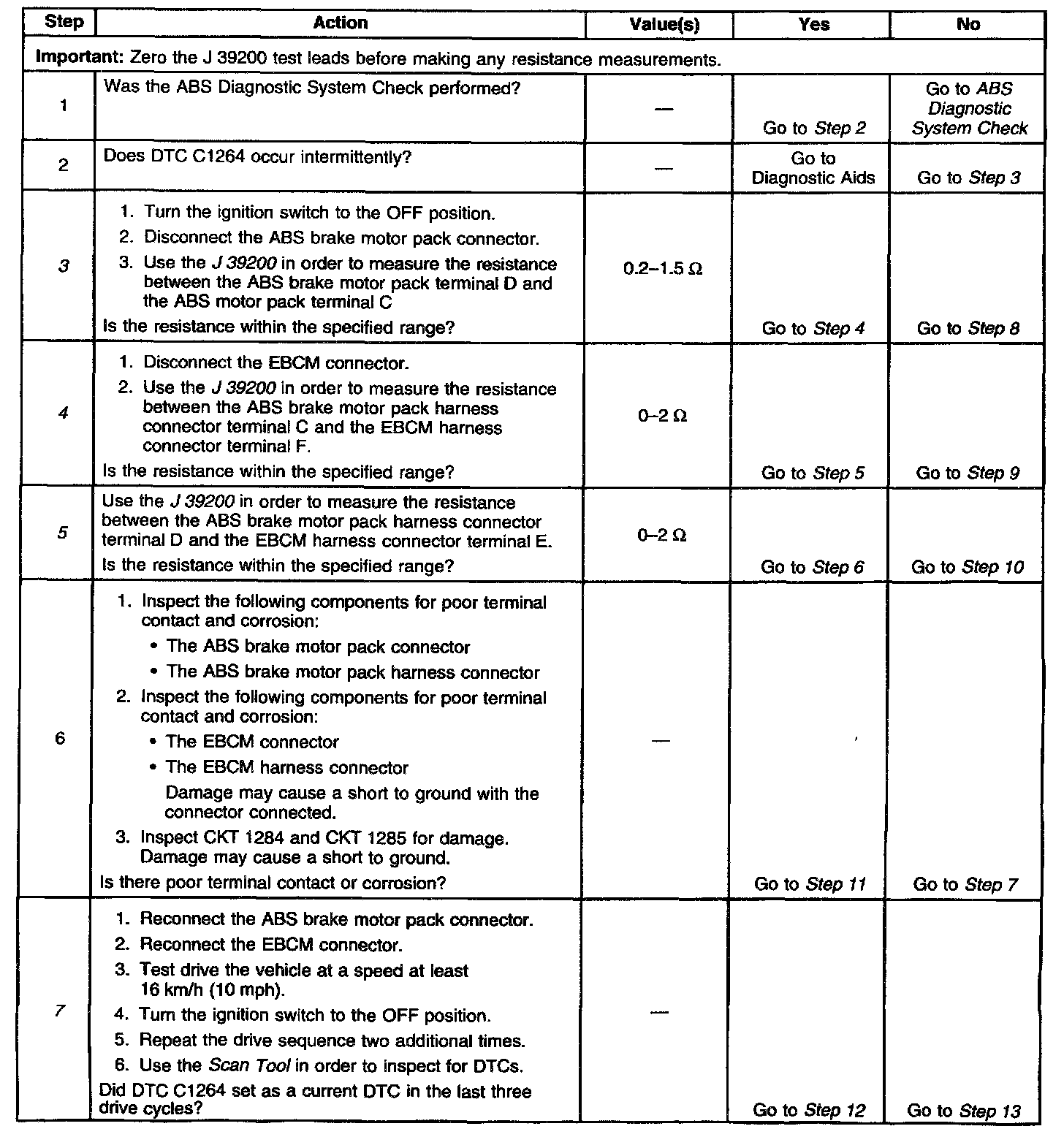 DTC 1264 identifies an ABS motor that cannot energize due to an open in the ABS motor circuitry. The malfunction will not allow proper rear ABS operation.