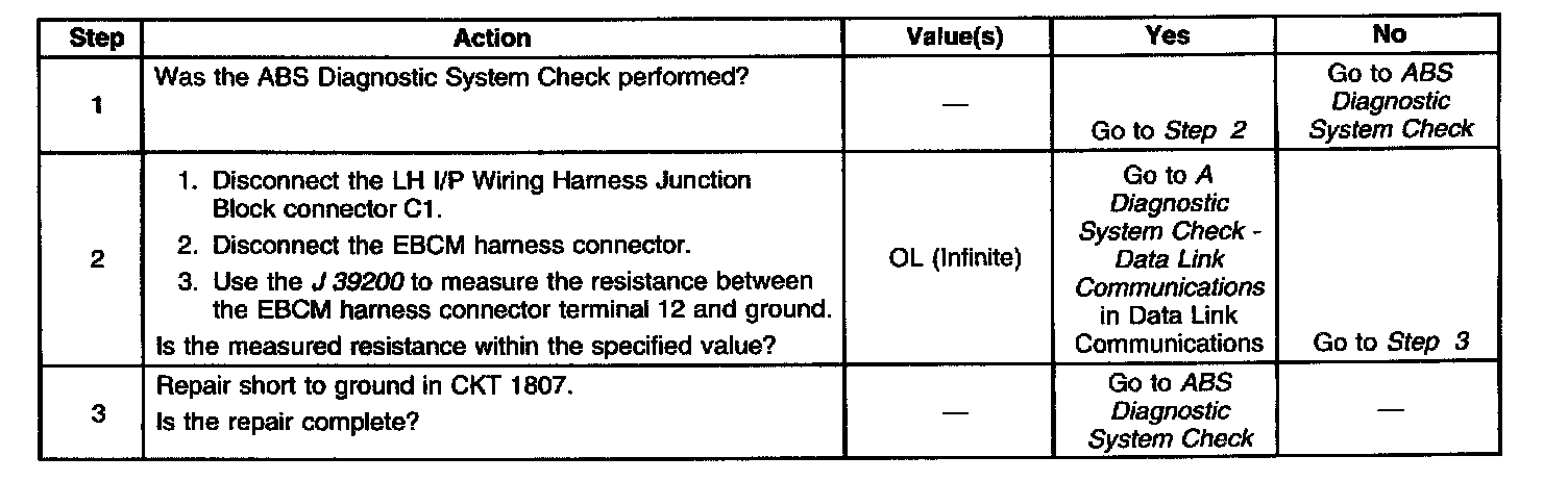 A malfunction exists if CKT 1807 is shorted to ground resulting in no communication to the PCM or any other controller.