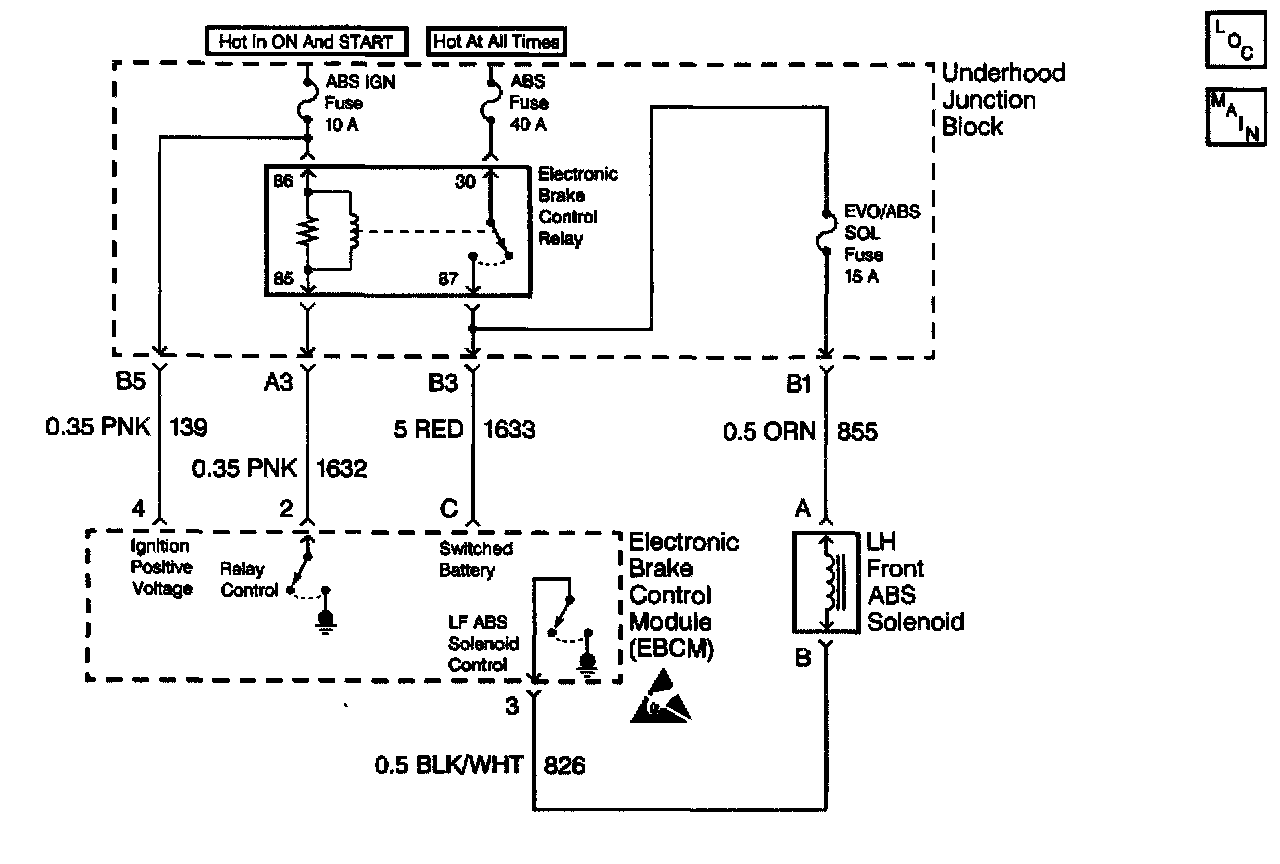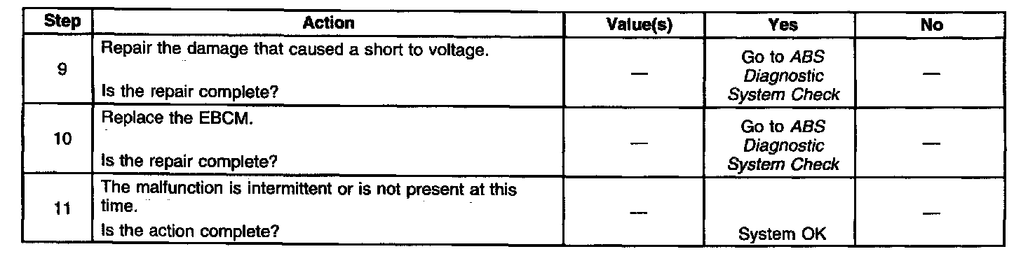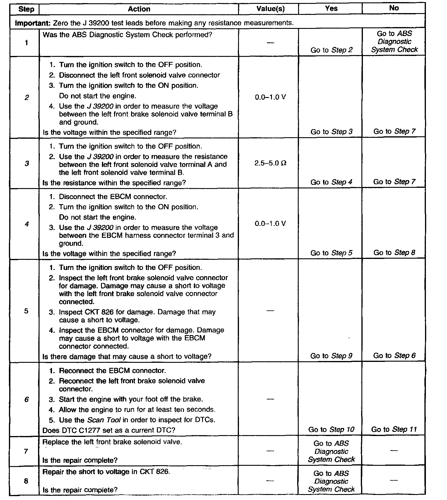A malfunction exists if the EBCM detects the left front brake solenoid valve control circuit voltage is not within specifications.