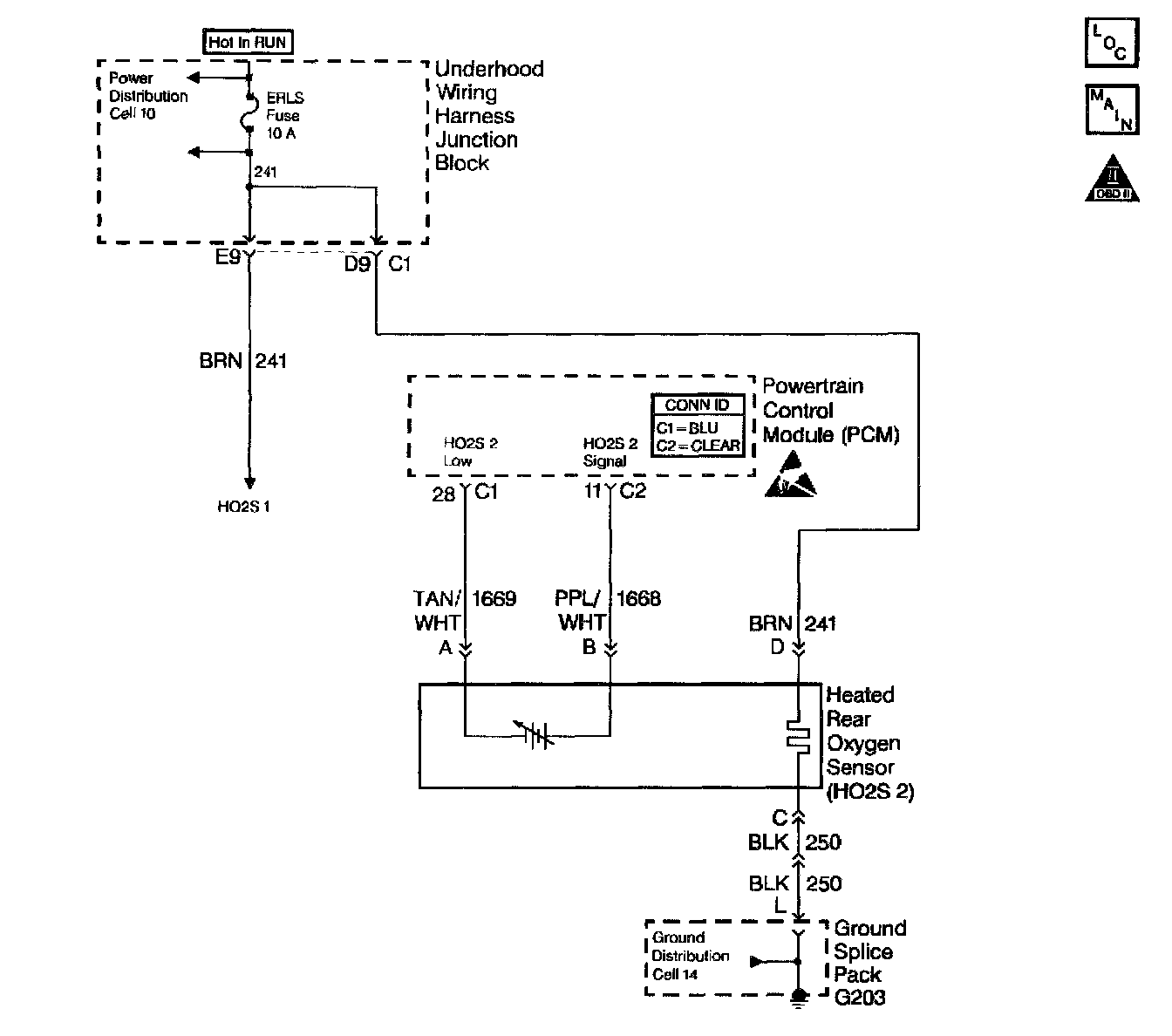 ^ Open HO2S Signal or Low Circuit or Faulty HO2S. A poor connection or open in the HO2S signal or low circuit can cause the DTC to set during deceleration fuel mode. An HO2S which is faulty and not allowing a full voltage swing between the rich and lean thresholds can also cause this condition. Operate the vehicle while monitoring the HO2S voltage with a scan tool. If the HO2S voltage is limited within a range between 300 mV to 600 mV, check the HO2S signal and low circuit wiring and associated terminal connections. If the wiring and connections are OK, replace the HO2S.