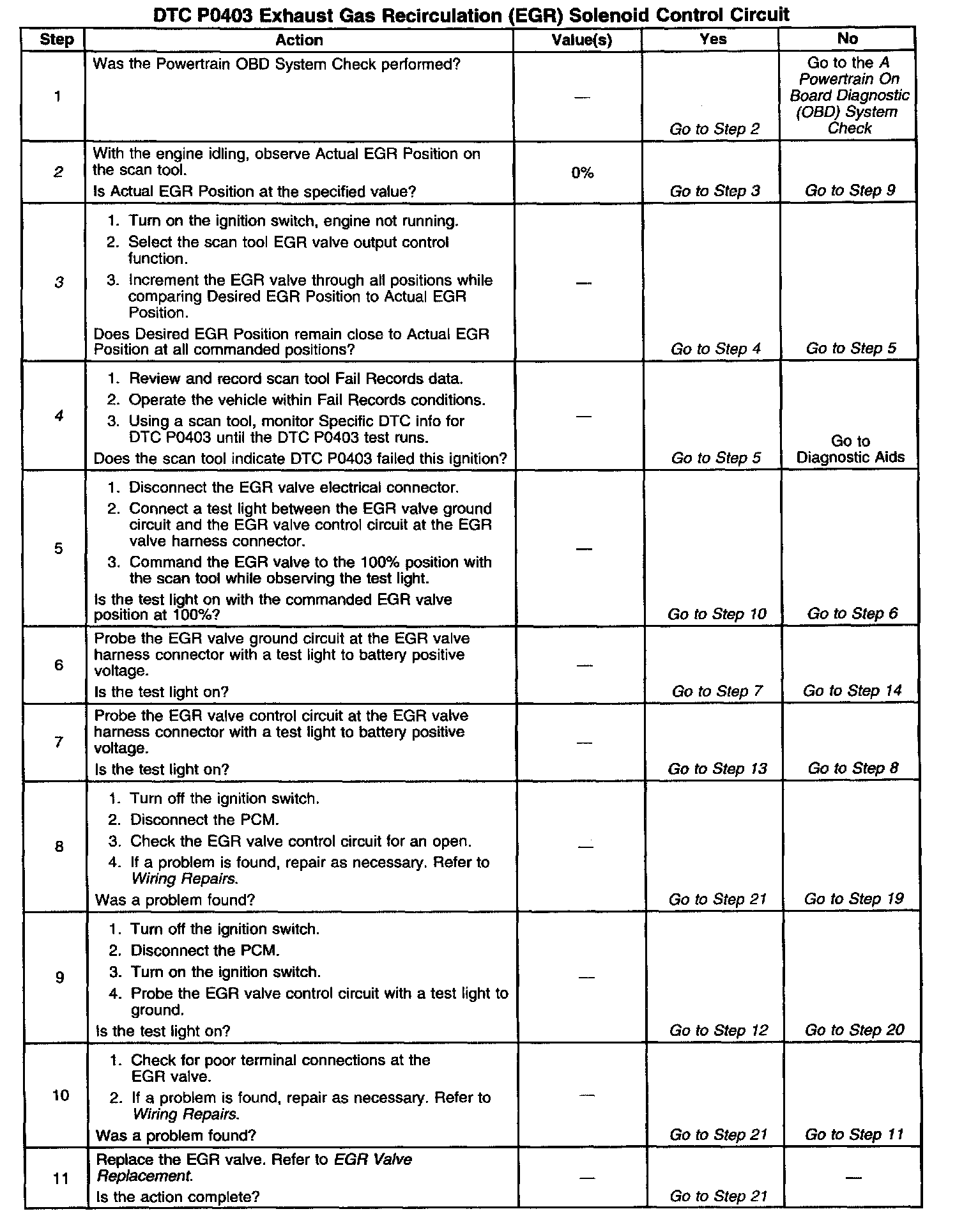 4. If DTC P0403 will only set under certain conditions, the malfunction may be intermittent, refer to Diagnostic Aids above. If an intermittent wiring problem is not present, check for a poor connection at the PCM or the EGR valve.