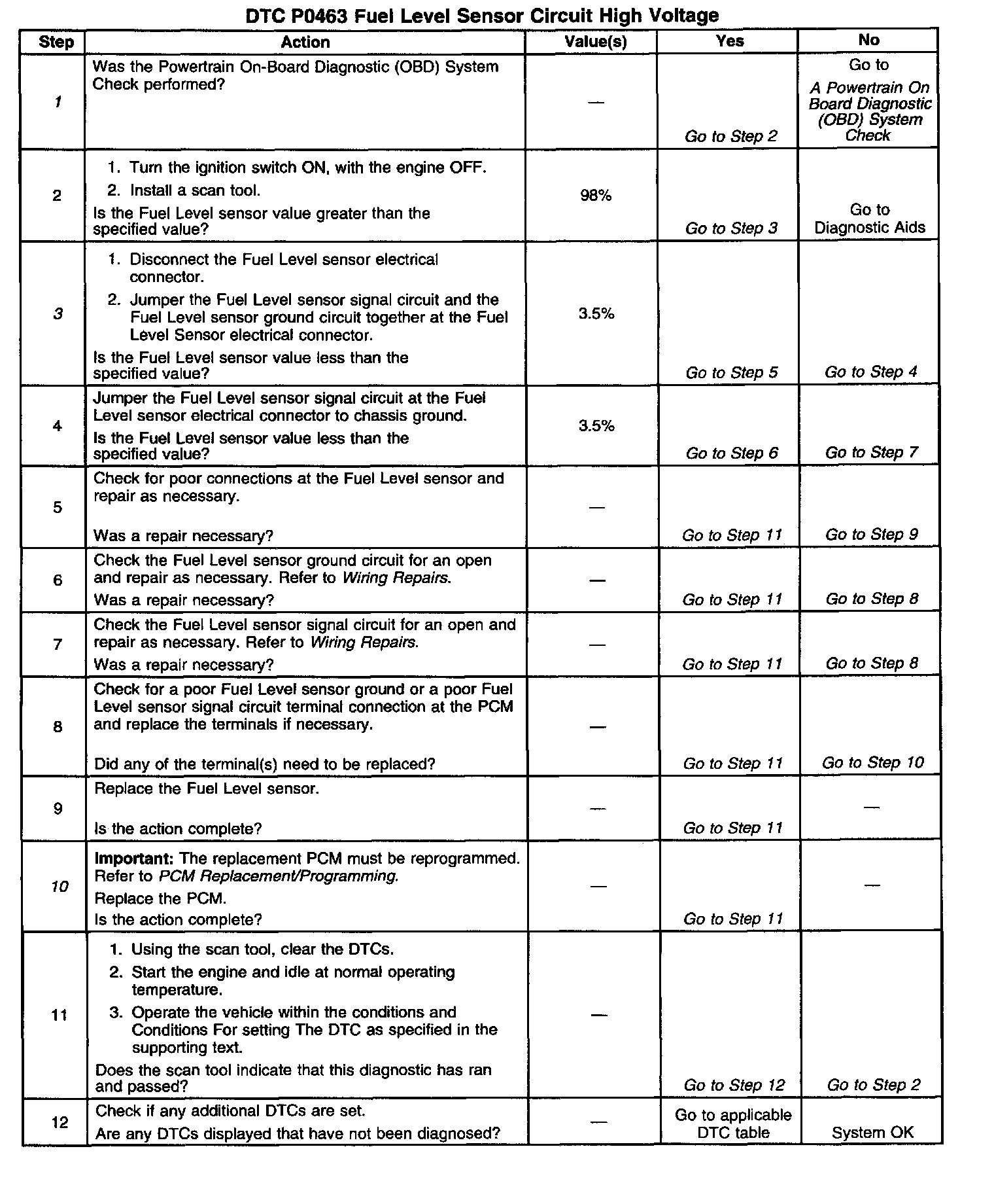 3. This step simulates a DTC P0462. If the PCM senses the change, then the PCM and the Fuel Level Sensor wiring are OK.