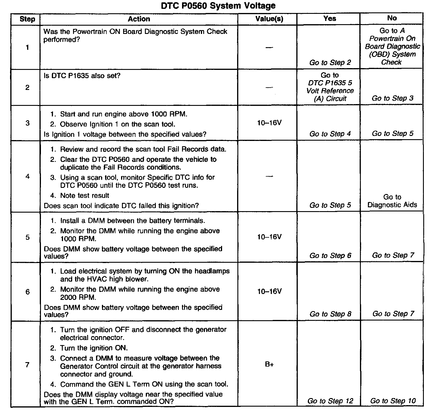 If DTC P0560 cannot be duplicated, reviewing the Fail Records vehicle mileage since the diagnostic test last failed may help determine how often the condition that caused the DTC to be set occurs. This may assist in diagnosing the condition.