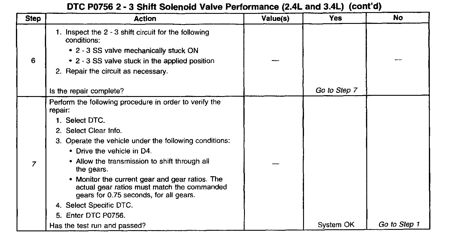 7. This step tests for a mechanical or hydraulic condition causing the 2-3 SS valve to be stuck ON, or the circuit to be applied.