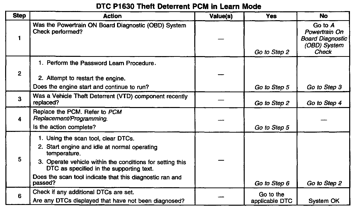 Attempting to start the vehicle by bypassing the theft deterrent system or substituting Parts without performing the password learn procedure may set a DTC P1631.