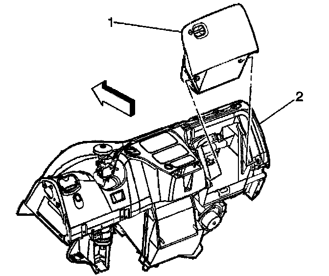 Snap the compartment (1) into the instrument panel (2).
