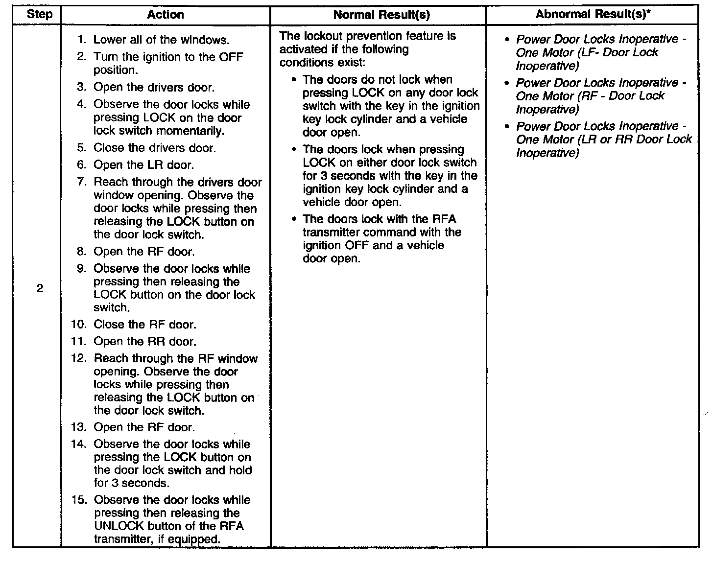 ^ One or more of the door lock motors do not operate properly.