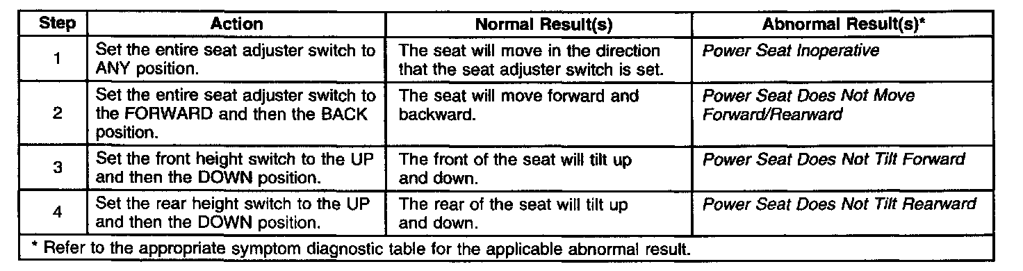 Power Seats System Check: