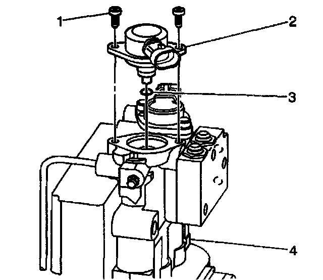 Important: Verify that the brake solenoid valve lip seal (3) is still attached to the brake solenoid valve (2) when removing the brake solenoid valve. If the seal is not attached, inspect the brake solenoid valve bore in the brake modulator (4).