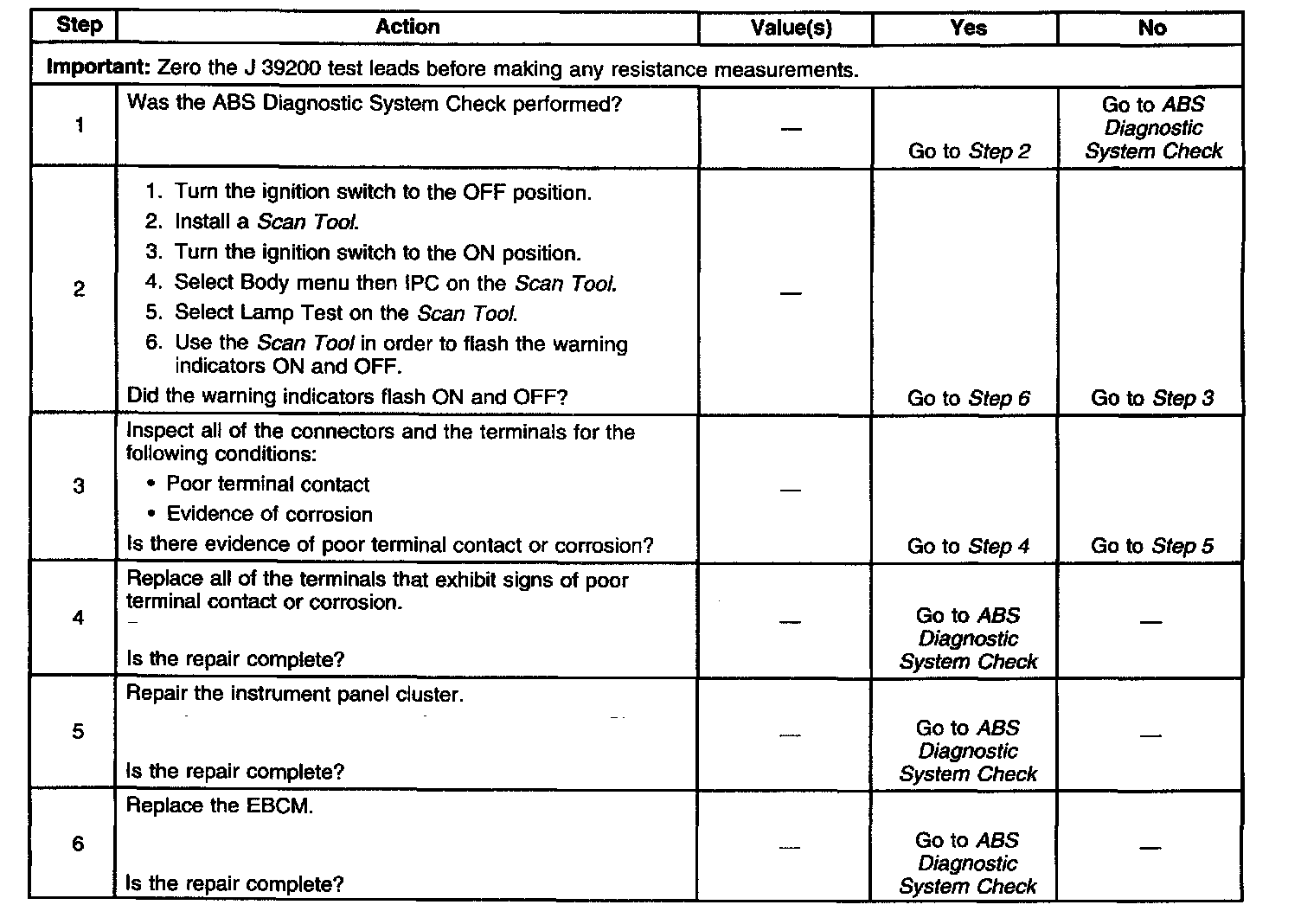 ABS Indicator Inoperative W/No DTC Set