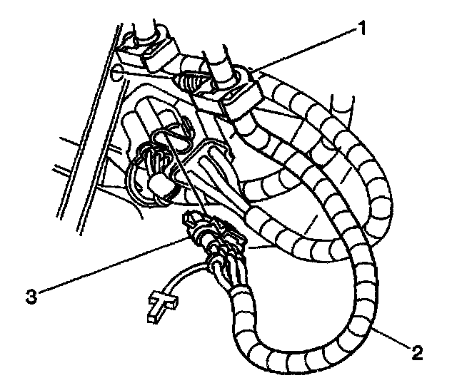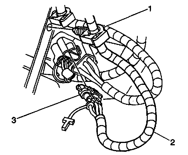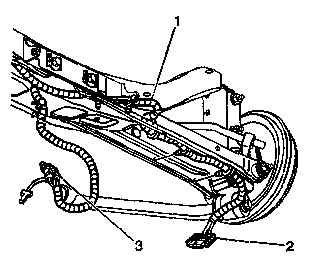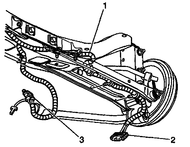 3. Disconnect the rear wheel speed sensor harness electrical connector (3) from the body connector.