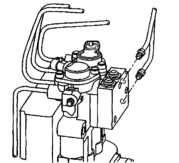 16. Relocate the bleeder hose to the forward brake modulator bleeder valve.