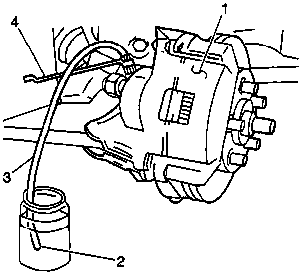 15.1. Attach a clear plastic bleeder hose (3) to the bleeder valve at the wheel.