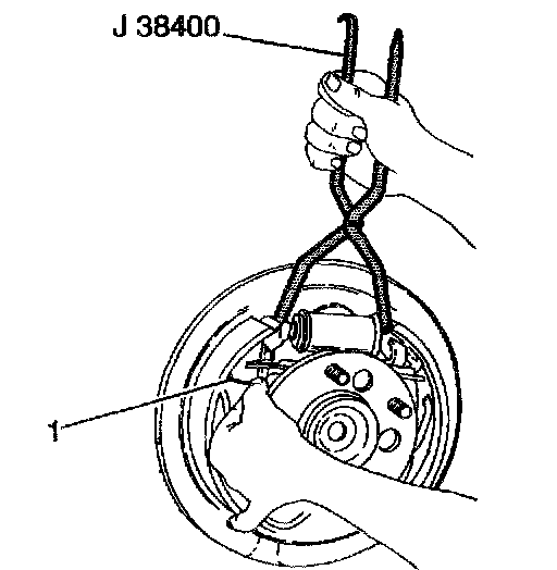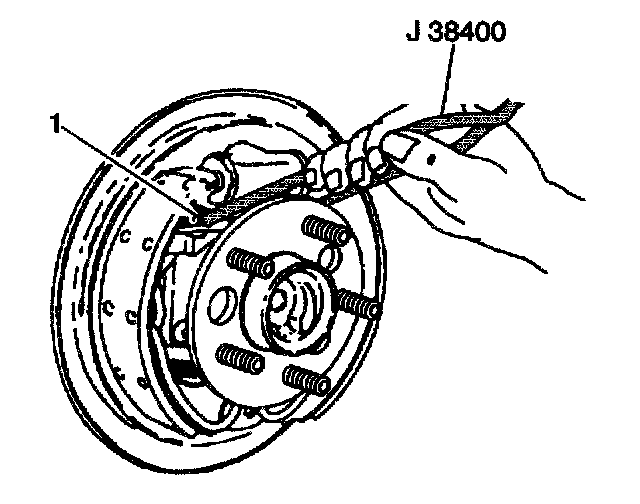 13.2. Use the J 38400 in order to spread the brake shoes while working the adjuster actuator (1) into position.
