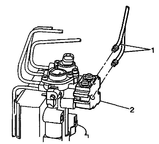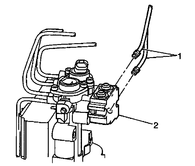 4. Disconnect the brake pipes (1) from the brake modulator assembly (2).
