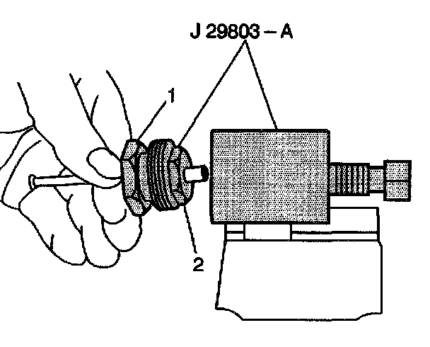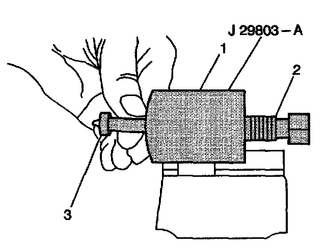 17. Back the clamping nut (1) out of the J29803-A.